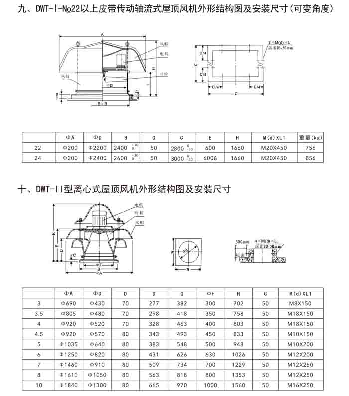 二、DWT-II、III 系列離心式屋頂風(fēng)機
